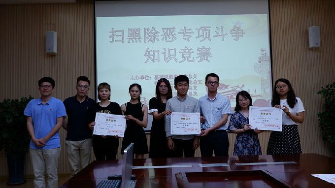 此次知识竞赛共分为三个部分,必答题(热身赛)、抢答题(挑战赛)、风险题(夺冠赛),设选择题和简答题两种题型。第一轮比赛为必答题,采取抢答的方式进行。八个党支部代表队依次答题积分,后四组淘汰,前四组进入第二轮和第三轮比赛。竞赛内容紧紧围绕“扫黑除恶专项斗争”的目标、意义、重点等应知应会知识,全面广泛地考察了党员们对扫黑除恶专项工作相关知识及文件精神的掌握程度。每位参与答题的党员都做了精心准备,大家有备而来,抢答积极踊跃。