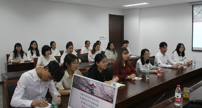 首先,尹书记介绍了南京林业大学理学院团委及院学生会概况。两校的学生代表逐个进行自我介绍后,就团学组织建设与改革问题进行深入交流。南京林业大学外国语学院团委及学生会尊崇部门精简模式,充分挖掘骨干学生潜力,一专多职,更好地服务学院。李书记还介绍了南京林业大学外国语学院专业师资实力,在专业性较强的教学中可采用“私人订制”的形式,针对每个学生制定不同的教学方法,做到因材施教。除专业课程外,还有日语俱乐部、青年志愿者协会、红十字协会等学生组织和团体,多方面提高学生专业知识实践利用率。同时,李书记强调专业社团不能纯粹依靠学生兴趣,还需要老师专业性的指导,以赛促学,把学生学的专业知识与技能通过比赛的形式展现出来。