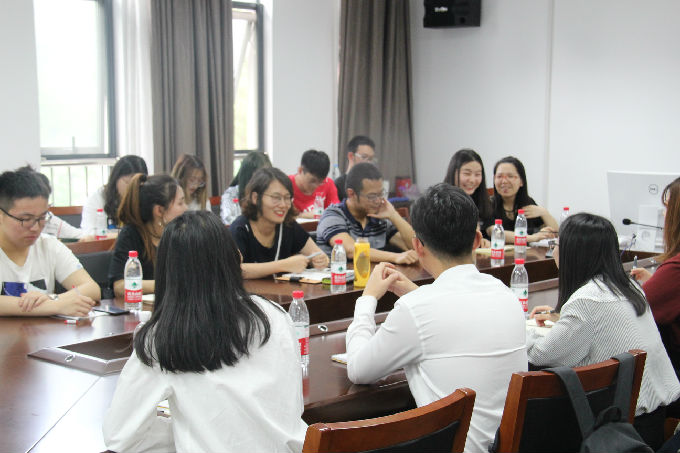 双方就如何开展主题教育活动、集中性专题学习活动、社会实践与志愿服务活动,如何选树大学生先进典型等方面进行深入探讨。同学们还分享了暑期“三下乡”社会实践活动经验,如南京林业大学外国语学院有以“一带一路”为主题去延边开展调查朝鲜族与汉族文化差异,探寻朝鲜文化与汉文化在文化、经济、政治等方面的交流融合。考取本校MTI研究生兼辅导员助理的朱昀针对英语专业学生分享到:应该保持谦虚好学的心态、胆大心细的工作风格,不断超越自己,同时要平衡好学习与工作的关系。