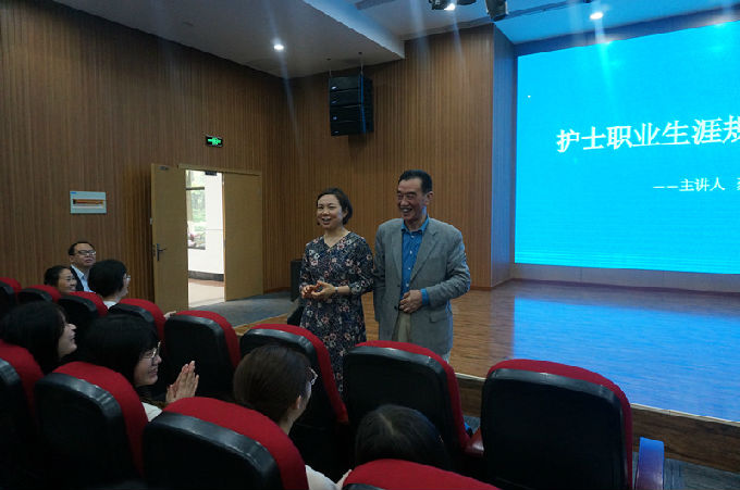 2019年4月24日下午,beat365正版唯一官网护理学院在南区音乐中心举办护理学院护士职业生涯规划专题讲座,特邀嘉宾无锡市护理学会理事长、无锡市人民医院护理部蔡英华主任,无锡市护理学会秘书长吴菊芬女士,主讲人为蔡英华主任。护理学院院长王心如、副院长周鸣鸣、党总支副书记胡宇、辅导员代表马莉、陈春晓、教师代表徐恬、陈朝军等以及学院大一至大四百余名学生参加此次讲座。