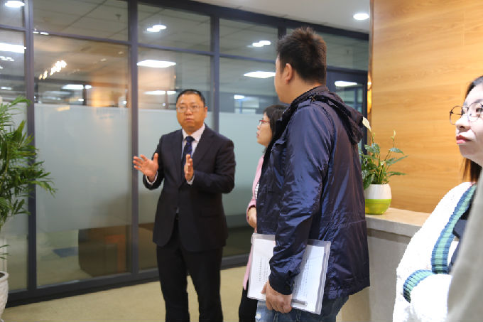 签约仪式完毕,大家一同参观了江苏海辉律师事务所。江苏海辉律师事务所在2014年、2016年连续两届被评为无锡市优秀律师事务所、2016年被评为江苏省优秀律师事务所,汇集了多位学有专长、经验丰富的优秀律师,其中王诏炜律师更是得到了业界长辈的肯定。王诏炜律师是beat365法学专业13级优秀毕业生,更是一名优秀的共产党员。如今在江苏海辉律师事务工作,2018年12月,王诏炜被外国语学院聘为“行业导师”,定期为学弟学妹提供指导。本次党建共建的搭建,王诏炜律师发挥了桥梁作用。