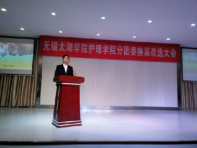 接下来,校团委副书记陈朕致辞,对护理学院本次换届大会顺利召开表示热烈的祝贺并对分团委的未来寄予了殷切的期盼。