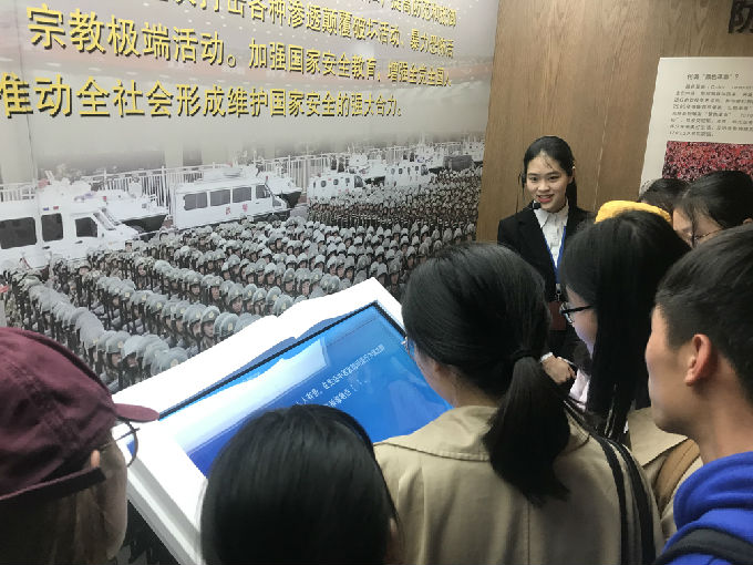 进入展馆,讲解员首先向大家讲道,习近平总书记在2014年4月第一次召开的中央国家安全委员会上提出总体国家安全观的概念,并强调各地区各部门要贯彻总体国家安全观,提高全民国家安全意识。同时,此馆也是在此背景下应运而生。随后讲解员为积极分子们播放了一部抗战短片,帮助大家更加形象地了解了中国革命的胜利不仅仅是武装夺取政权的胜利,同样也是隐蔽战线革命先驱们抛头颅洒热血获得的胜利,在场同学内心热血沸腾。