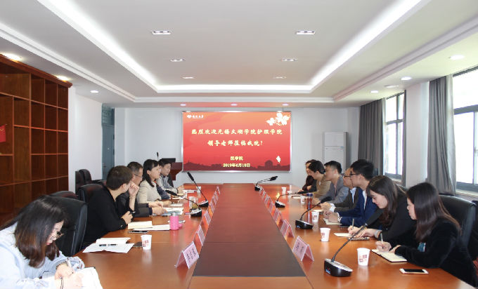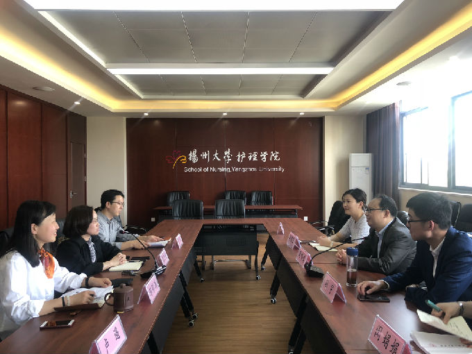 本网讯 为进一步加强学生工作队伍建设,提升学生工作人员专业化、科学化水平,2019年4月18日上午,beat365正版唯一官网护理学院副院长周鸣鸣、护理学院党总支副书记胡宇、护理学院基础医学系主任宋绍征、护理学院分团委书记兼学工秘书马晓星、辅导员代表詹雪丽、马莉、闵娟娟赴扬州大学进行学生工作交流,扬州大学医学院党委副书记陈轶群、护理学院党委副书记邹明玮、医学院团委书记许金鑫等领导热情接待我院一行七人。