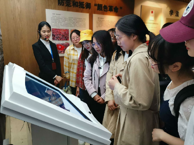 初至安全教育馆,严谨的标语和建筑风格便吸引了我们的目光,原来“安全无小事”在这肃穆的建筑外表中也尽显无遗了。首先,讲解员领着我们走进展览馆。进入展览馆后,讲解员讲道,习近平总书记在2014年4月第一次召开的中央国家安全委员会上提出总体国家安全观的概念,并强调各地区各部门要贯彻总体国家安全观,提高全民国家安全意识。此馆也是在这个大背影下成立的,总展区面积530平方米。随后讲解员为我们播放了一部短片,让我们更加形象地了解了中国革命的胜利不仅仅是武装夺取政权的胜利,同样也是隐蔽战线革命先驱们抛头颅洒热血获得的胜利。接着,我们依次参观了主展区中的三个展厅。第一为“碧血丹心”,主要展示了中国共产党领导下的隐蔽战线斗争发展的艰难历程。第二展厅为“斩断魔爪”,其真实反映了失败方在新中国建立初期的疯狂反扑,同时也再现了改革开放新时期的种种历程,以及潜在的境内外敌对势力隐患。第三展厅为“众志成城”,这一展厅以案说法,向大家传播了关于《中华人民共和国国家安全法》、《中华人民共和国反间谍法》、《中华人民共和国反恐怖主义法》的相关知识,提醒我们增强法制意识,安全无小事。参观完了所有展厅后,我们在“无锡市国家安全教育馆”这些肃穆的字眼下合影留念。