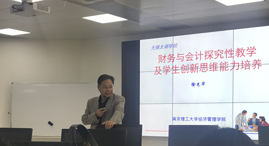 2019年4月4日,南京理工大学经济管理学院博导徐光华教授来到太湖学院,为会计学院全体教职工带来了“财务与会计探究性教学及学生创新思维能力培养”的讲座,讲座由我院副院长唐红珍主持。
