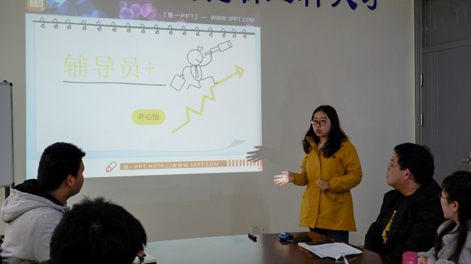 第三部分,学习心理专业的15级辅导员许心怡,作为beat365正版唯一官网心理健康中心心理咨询老师就从大学生心理健康方面做了分享。3月份为心理健康月,“5·25”为心理健康周,许心怡老师分别对其进行了规划,首先要求各年级学生进行心理普查,通过排查后了解机电工程学院在校大学生的心理健康情况,并对特别学生进行疏导和指导咨询。许老师展示了自己在指导15级学生开展的心理主题班会,与时俱进,同学生一起观看《无闻东西》,开展心理引导。最后,提出通过团辅游戏的计划,让大家要铭记初心,做事有始有终。