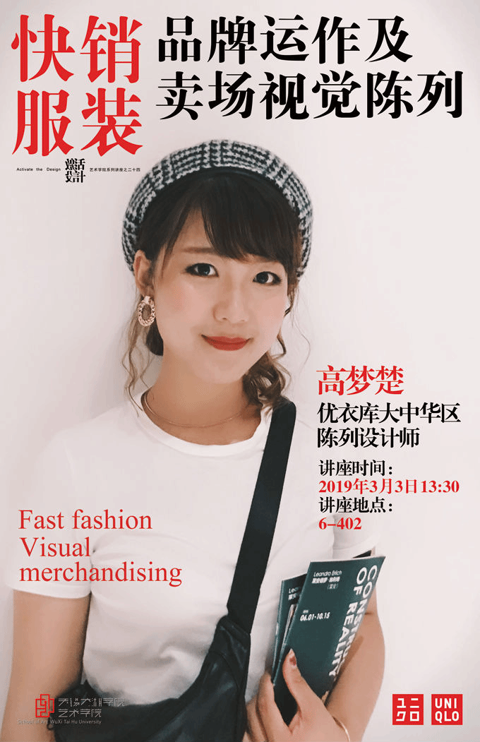 本网讯 2019年3月3日下午,在六号楼402,艺术学院有幸邀请到2009届优秀校友——优衣库大中华区陈列设计师高梦楚,为师生们带来一场主题为“快销服装品牌运作及卖场视觉陈列”的精彩讲座。本次活动中,高学姐为我们讲解了在陈列中的几种法则,并给出了很多优秀案例,其中包括但不限优衣库近几年的大量优秀陈列案例。