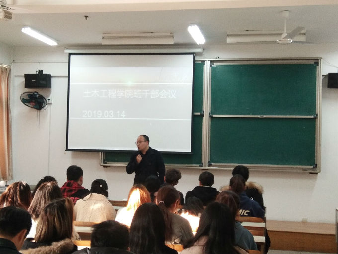 3月14日下午,土木工程学院在7号楼116教室举行2018-2019学年第二学期全体班干部会议,本次会议由土木工程学院学工秘书朱敏主持,土木工程学院党总支副书记余波、土木工程学院大一至大三全体班干部参加了此次会议。