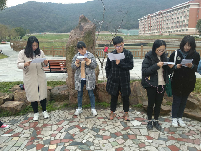 时光总如指间沙,一瞬即逝,晨读活动在同学们不标准但铿锵有力的读书声中渐进终幕,路边赶着上课的同学向我们投来好奇的目光,一大清早为什么要在湖边吹瑟瑟寒风呢?可笨鸟先飞又有几人能做到?期待大家在下次晨读活动中再见,也期待有更多口语学习与爱好者加入我们。