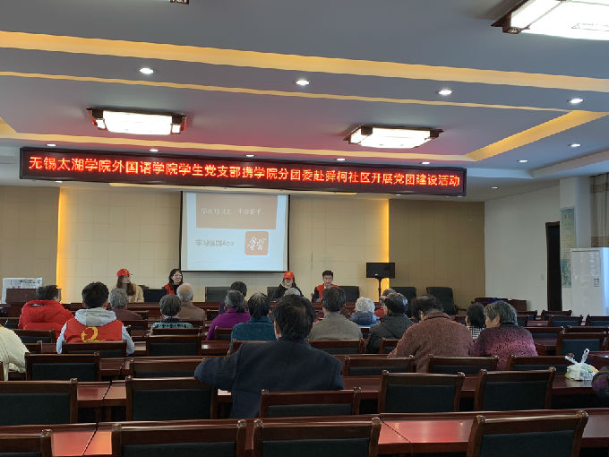 3月13日下午,外国语学院学生支部与分团委共赴舜柯社区开展“学雷锋”志愿服务活动。本次活动由孙雨涵、丛林等学生党员及团员代表向舜柯社区的爷爷奶奶们宣讲两会精神并推广学习强国APP。