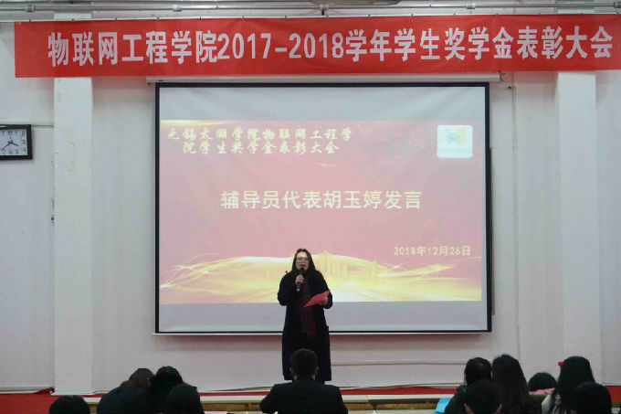 为促进学院学风建设,营造树立榜样,赶超先进的良好学习氛围,发挥优秀学生模范带头作用,物联网工程学院于12月26日在7号楼102举办2017-2018学年学生奖学金表彰大会。