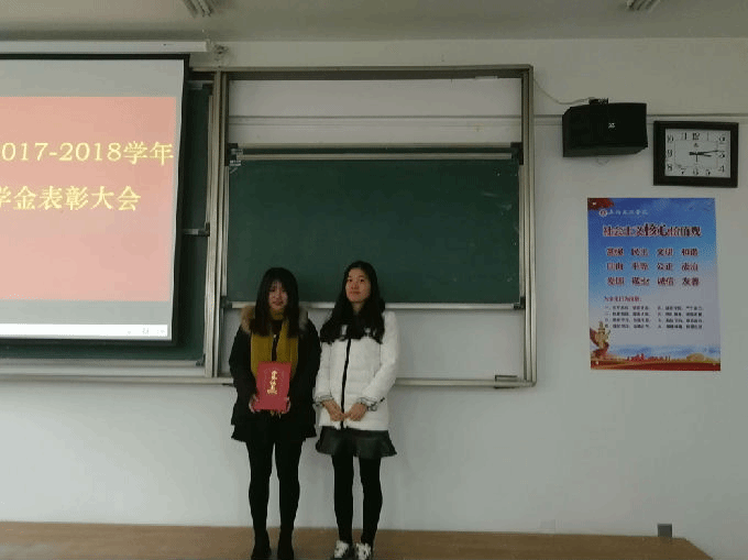 首先,由朱敏老师宣读学院表彰决定,她勉励获奖同学戒骄戒躁,以更加优异的表现投身到今后的学习工作中,以身作则,带动班级同学一起努力一起前进。