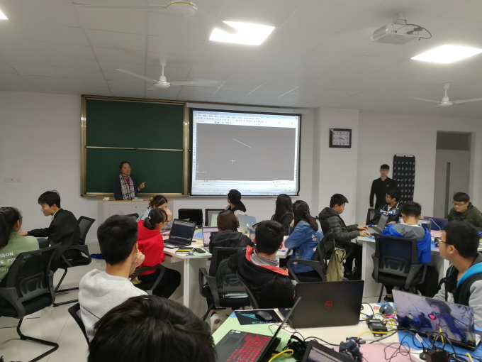 培训过程中,俞萍老师详细向同学们介绍了CAD的功能、今后能运用到的领域以及操作CAD制图的工具等。虽然是初次接触,但是同学们呈现出了火一般的热情。俞萍老师的讲课方式深受同学们的喜爱,大家都表示接受起来很轻松。