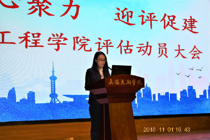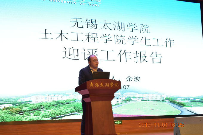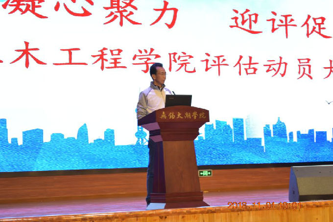 大会第二项议程,由土木工程学院党总支副书记余波围绕合格评估观测点学风建设与学业指导以及教学质量开展的情况给同学们进行了介绍,余书记通过对学校办学定位、学院学生工作队伍基本情况、人才培养目标、师德师风建设、思想政治教育情况、学风建设情况、就业质量情况等多个方面的详细介绍,让同学们进一步了解学院学生工作开展的情况及取得的成果,明确了学生工作以学生为中心的工作理念。随后,余书记强调本科教学合格评估既是对学校转型发展、内涵发展的一次考验,也是对每一名太湖学子的一次考验,同学们秉承“校兴我兴,校荣我荣”的思想,与学校同呼吸共命运,以实际行动投身到迎评工作中,以饱满的精气神迎接评估。