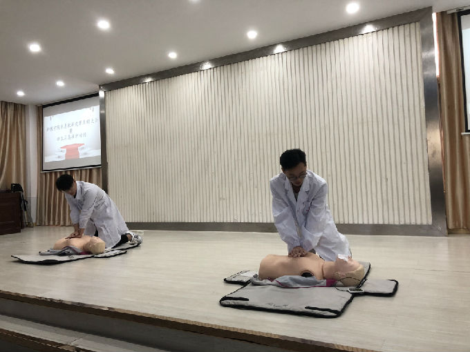 最后,beat365参赛代表在现场演示了本次参赛内容,并对大一新生进行了应急救护培训,充分体现了参赛学生扎实的专业技能,赢得了在场师生热烈的掌声!