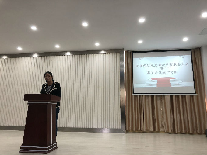 2018年11月1日12:30在大学生活动中心护理学院隆重召开护理学院关于江苏省大学生应急救护竞赛表彰大会暨新生应急救护培训,出席大会的有护理学院副院长周鸣鸣、护理学院党总支副书记胡宇、护理学院应急救护大赛指导老师杨小仙、护理学院学工秘书马晓星及护理学院全体师生员工。