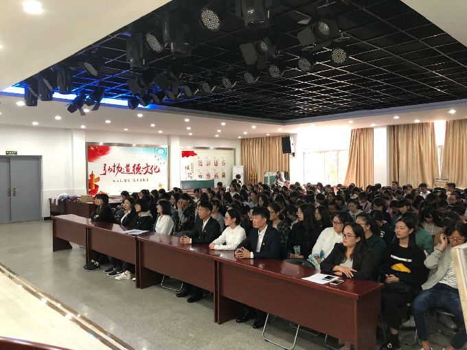 2018 年10月24日,为纪念改革开放四十周年,外国语学院有幸邀请了退休教师党支部书记朱纯光先生为大一新生和学生干部带来精彩的讲座。党总支副书记俞昊波出席讲座,讲座由分团委书记许晓艳主持。