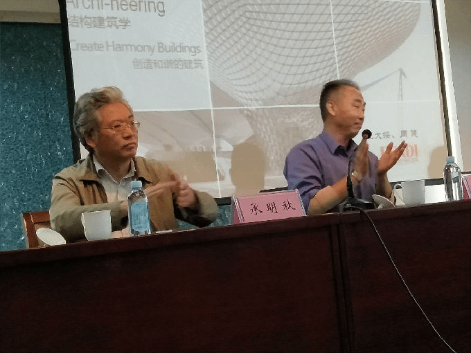 本次讲座以“建筑结构”为主题,主要讲述了两个部分。一是“创造和谐的建筑”,汪教授从浦东机场T2航站楼的建设与多年前建造的T1航站楼的和谐讲到我国首创,成功的将机场与地铁站相结合的上海虹桥机场2号航站楼,重点强调了建筑和谐的重要性。