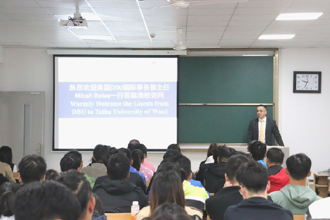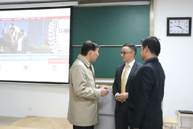 接着美国DBU国际事务部主任Micah Raies向在座同学们介绍美国德克萨斯州的达拉斯浸会大学。Micah Raies表示德州是具有巨大发展潜力的城市,2022年美国将开通三大城市高铁,其中一个城市就包括德州,并且德州机场飞机直飞城市也在逐渐增加,众多行业总部也位于达拉斯。达拉斯浸会大学拥有120年历史,2018年在全美排名202名。Micah Raies表示学校管理严格,拥有博士等级教授对学生进行授课,入学条件好等,许多美国名人及中国上海、深圳等南方城市名校领导都来自DBU毕业生。Micah Raies希望我们的同学在此锻炼自己的学习、工作、沟通等能力,毕业后可以陆续找到令人满意的工作岗位。