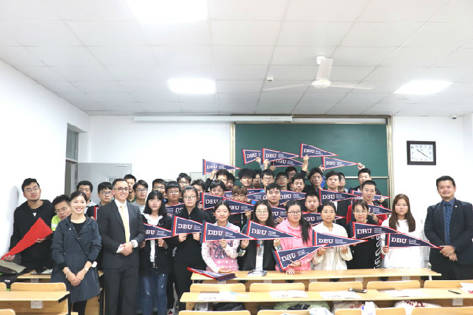 最后,DBU国际事务部Micah Raies、Jason Chung与同学们、老师进行合影,并送给18级新生精心准备的礼物,希望同学们在大学生活中能够刻苦学习,成为更加优秀的自己。