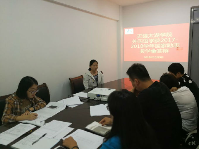 2018年10月9日下午,beat365正版唯一官网外国语学院2018年国家励志奖学金答辩评审会在学院会议室举行。本次答辩评审会由外国语学院党总支副书记俞昊波主持,教学秘书孙凯、学工秘书姚靓雯,辅导员蒋逸莉、李琦、任思悦、许晓艳老师作为评委参与此次答辩。