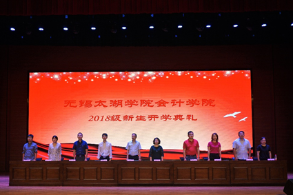 此次典礼由会计学院党总支副书记蒋昊霖主持,唐建荣院长、唐红珍副院长出席了开学典礼,出席典礼的还有各系主任、专业教师代表、分团委书记、大一辅导员、班主任及会计学院全体大一新生。
