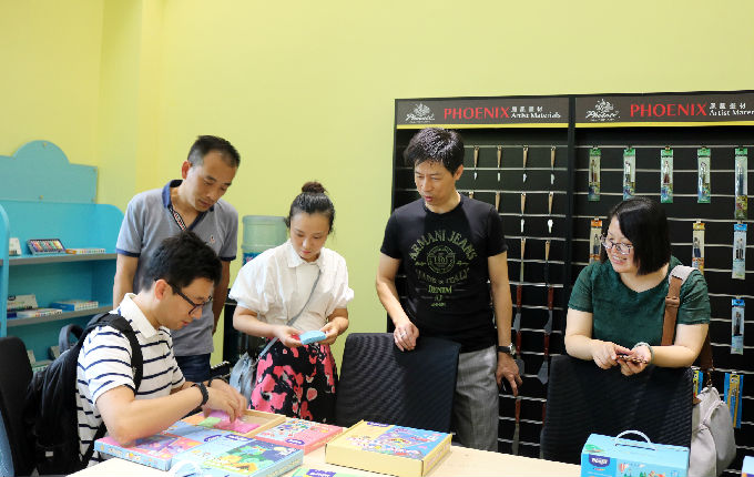 为进一步了解凤凰画材在品牌定位、主营范围、产品体系等方面的详情,老师们参观了艺术品展厅以及产品陈列室,直观的感受了作为全球油画布制造领军企业,凤凰画材在油画布、油画框、颜料等专业绘画材料以及艺术品经营两大主导产业的发展现状。双方就儿童画材的造型设计和包装设计;文创产品的策划定位和设计研发;企业品牌形象再设计再定位等校企合作的具体项目展开深入研讨,针对企业的具体需求,老师们也从各自专业的角度对品牌发展、文化创新、包装体系、产品造型、画具改良等方面提出自己的建议。
