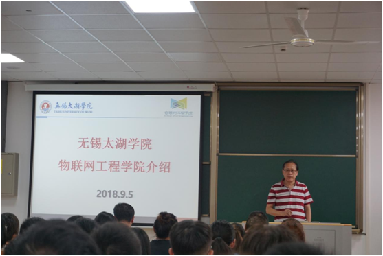 会议上惠院长首先对考上太湖学院的专转本新生们表示祝贺,对学校和院系的基本情况及特色做了简要介绍,鼓励了他们的勤奋好学,并勉励新生要以本科的身份要求自己,也希望他们在座各位能够充分利用太湖学院资源,认真学习专业知识。接下来惠院长介绍了物联网专业的前景,无锡作为世界物联网之都,拥有国家级感知中心,物联网示范基地,学校与企业之间拥有深度的产教融合计划,发展前景可谓极好。