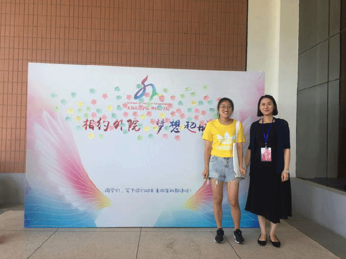 外国语学院此次迎新活动旨在为2018级新生提供有序、高效、便利的服务,体现了学院对新生的关怀,有利于增强新生对外国语学院的认同感与归属感,也表现了外国语学院积极昂扬的精神风貌。学院报到处入口设置签名墙,外国语学院为来报到的新生们设置每人送给未来大学四年给自己的一句话——“相约外院、梦想起航”!