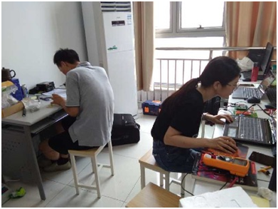 在7月20日至7月23日作品设计阶段,同学们刻苦努力,在老师指导下,查阅资料、确定方案、画电路图、编程、仿真、制PCB板、焊接、调试,失败了再改、再做、再调,经过四天三夜的不懈努力,终于完成了参赛作品。7月27日在南京工业大学浦江校区进行的参赛作品演示、答辩环节,参赛队伍的优异表现也得到了评委组的高度认可。