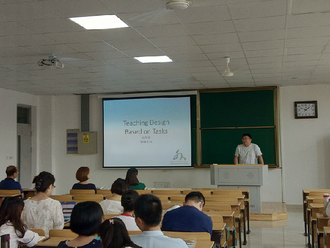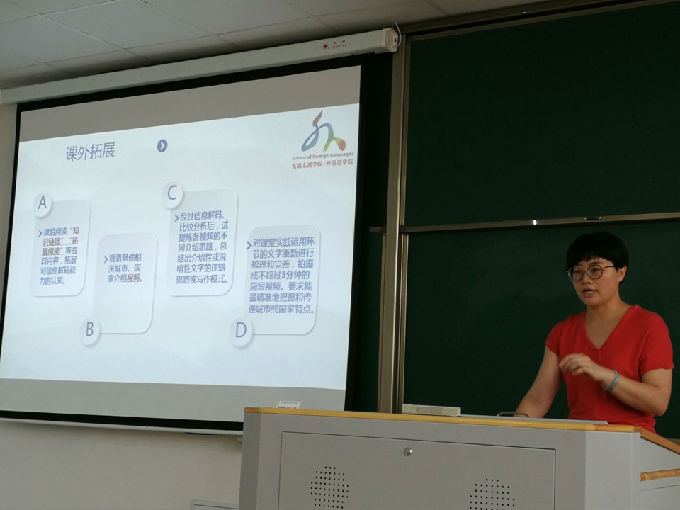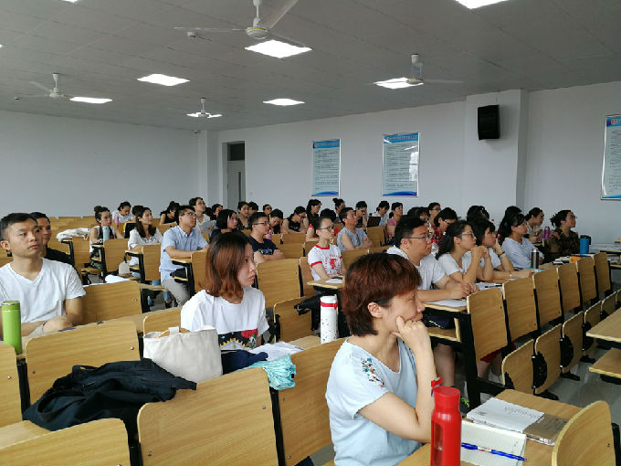 7月31日,外国语学院在工科实验大楼A403教室开展课堂教学质量提升工程——示范课活动,出席人员包括外国语学院院长包通法、副院长刘荔、副院长吴旻昊及外国语学院全体教师。