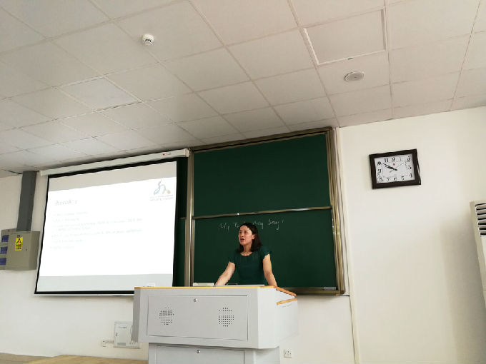 根据学校关于开展课堂教学质量提升工程的工作方案以及其他要求,外国语学院成立了相应的领导小组,制定了示范课评价体系、组织方式、工作时间表等细则或要求,并且组织实施,确保工作质量。通过把课堂教学质量提升工程专题培训和专家示范教学内容运用到课堂教学中,切实改进外国语学院教师的课堂教学水平,从而达到提高人才培养质量的目的。示范课包括“说一门课”和“说一节课”,主要内容如下:说教学内容、说学生情况、说教学目标、说教学方法、说教学资源、说教学过程、说教学评价、说教学板书/PPT设计等。接着,相关教师分别进行了示范课的说课。