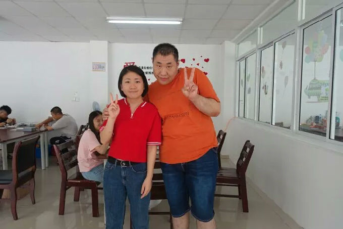 当工作完成到一定数量后,小组成员和残障人士稍作休息。为了更加贴近残障人士的生活,让他们感受到来自社会的关爱,小组成员与残障人士进行了亲切地交谈,问候他们的日常生活和工疗站的工作。残障人士很开心地拉着小组成员的手,叫着姐姐,津津有味地讲述着属于他的一天。交谈结束后还要求与小组成员单独合照。