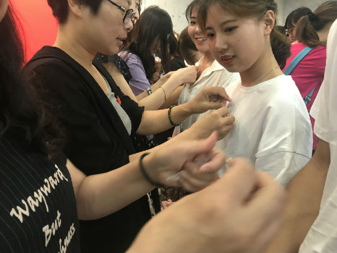 进入馆内,鲜艳的党旗跃入眼中,洋溢着神圣与庄严。新党员们在支部书记的带领下,在党旗前庄严宣誓:“我志愿加入中国共产党,拥护党的纲领,遵守党的章程,履行党员义务,执行党的决定,严守党的纪律,保守党的秘密,对党忠诚,积极工作,为共产主义奋斗终身,随时准备为党和人民牺牲一切,永不叛党。”而后,教师党员们为他们佩戴上党章,在党旗前记录下了这一具有纪念意义的时刻。党总支武蓓蓓书记寄语全体学生党员,立足新时代,发扬我党优良传统,时刻以党员标准严格要求自己。