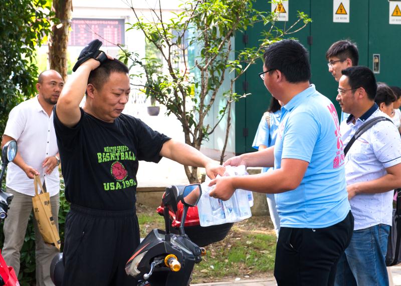 下午两点半,无数高考学子已经进入考场,正焦急地等待试卷的发放。这时,青马班学员们的任务是协助公交公司的工作人员疏导拥挤的交通,因为四周道路上停满了送考家长的车辆,来往道路上不时有汽车鸣笛,大家示意车辆尽量不要鸣笛,保持考场周围的安静。不一会,原本拥挤的校门口便恢复了安静。考试开始了,仍有许多家长在考点门口焦急地等待着,那种无言的爱令人感动。于是学员们纷纷上前慰问那些焦急的家长们。学员们的这些举动正巧被一位摄影爱好者拍下,她随后向我们询问,并对我们的行为大加赞赏。随后,她邀请学员们帮忙给校门外焦急的家长们发送矿泉水,学员们都是经历过高考的人,深知此时此刻家长们紧张的心情,我们在递上矿泉水的同时也预祝他们的孩子金榜题名。其中一位青山中学新疆班学生的家长让我们尤其感动,他特地从新疆乘飞机赶来看女儿,但他为了不让自己的女儿分心,没有提前联系女儿,以至于他只知道女儿在青山高中上学,却不知道女儿在哪考试。因为他女儿考理综,而青山高中是文科的考点,即便这样,他还是不愿意打电话给自己的女儿。随即我们帮助这位父亲四处询问,这一幕被无锡日报的记者看见,对这位父亲进行了采访,学员们在旁也听得热泪盈眶,感受到了这种无言的父爱。