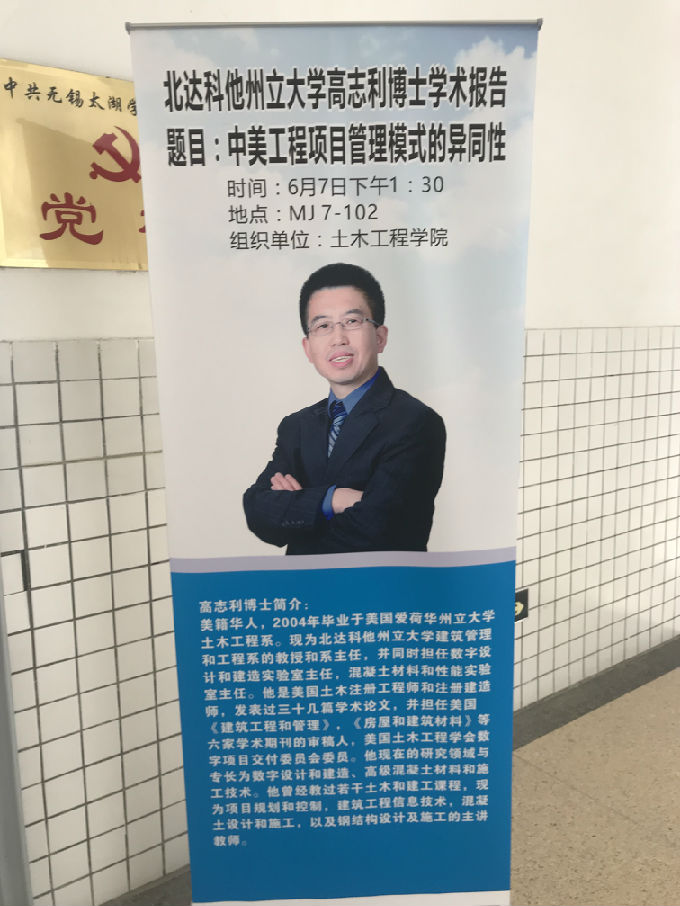 6月6日下午,应学院邀请,北达科他州立大学建筑管理和工程系高志利教授为我院师生作学术报告。我院副院长张军、党总支副书记余波、学院教师及大一至大三各班级学生代表参加了此次报告会。