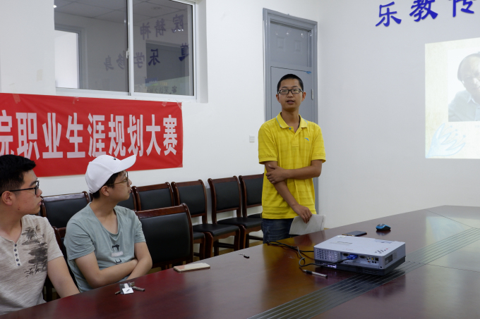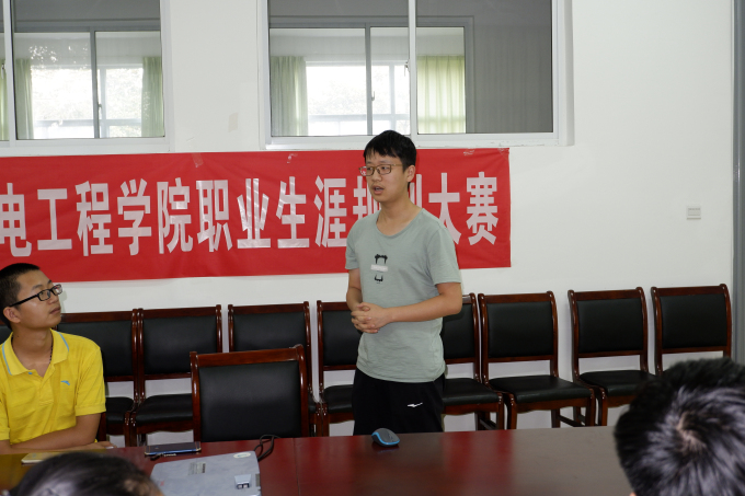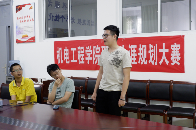 为帮助同学们树立正确的人生观、职业观,合理分析定位自身发展方向。5月31日下午3点在13号楼会议室,机电工程学院成功举办了大学生职业生涯大赛院内选拔赛。机电工程学院党总支副书记杨学圣,学生团支部书记许心怡,辅导员佘子骞担任本次大赛评委。