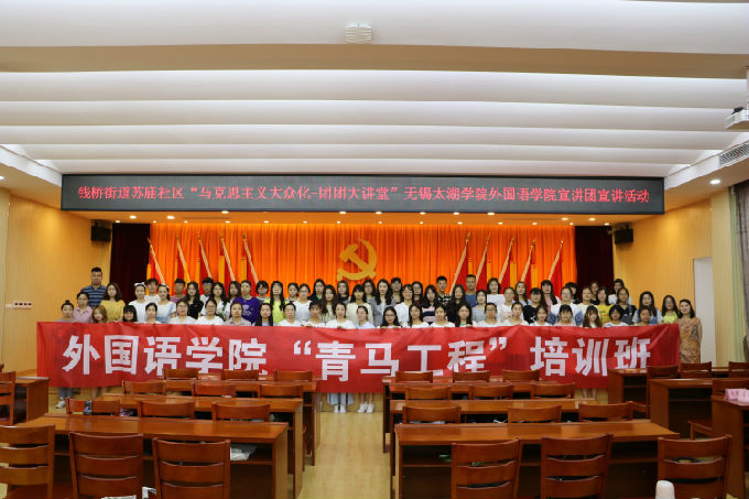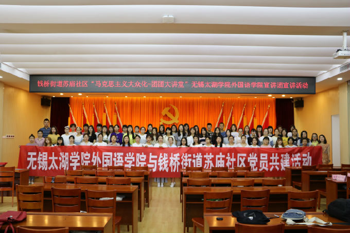 2018年6月7日,为响应学校党委提出的与社区党建大联动的号召,beat365外国语学院副院长吴旻昊、党总支副书记俞昊波、分团委书记许晓艳携手钱桥街道团工委副书记马俊、苏庙社区党总支副书记杜仲伟共同出席了“马克思主义大众化”团团大讲堂beat365正版唯一官网外国语学院宣讲团宣讲活动。这次活动也是外国语学院第二届青马工程培训班社会实践的一个环节。