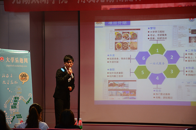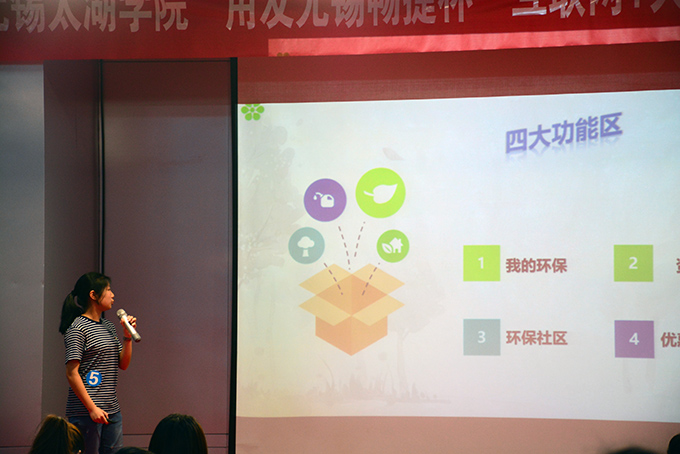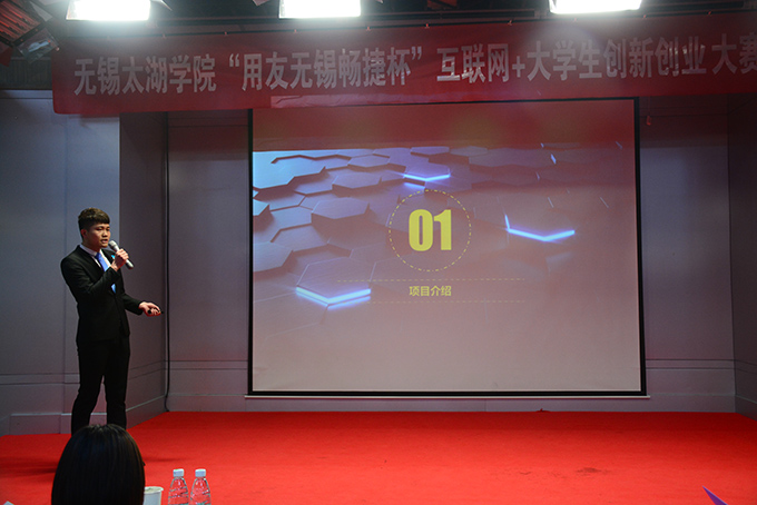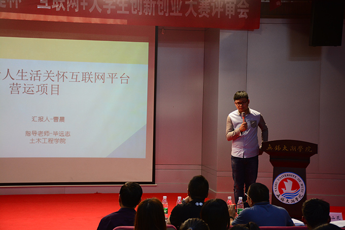 本次大赛由创业学院、校团委主办,物联网工程学院承办,用友无锡畅捷公司协办。学校专门成立了校内外专家相结合的评审组,由用友新道江苏渠道总经理、省赛评委徐学斌担任评审组长。大赛分初赛和决赛,初赛有17个项目入围决赛,决赛在音乐厅举行,200余名学生现场观摩了比赛,决赛采取路演的方式,5分钟PPT汇报、3分钟回答评委的提问,经过4个多小时的拼搏,校内大赛圆满结束。
