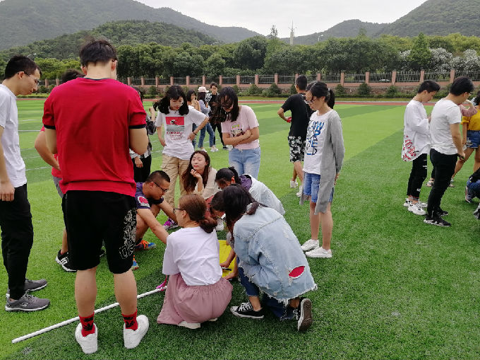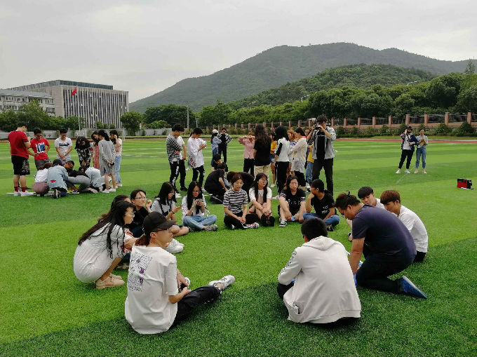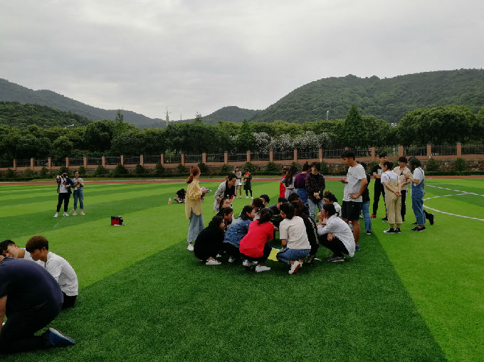 全体同学手拉手围成一个大圆,然后按照白教练的指令完成动作,输的同学还有趣味小惩罚哦,真是充分调动了同学们的积极性!