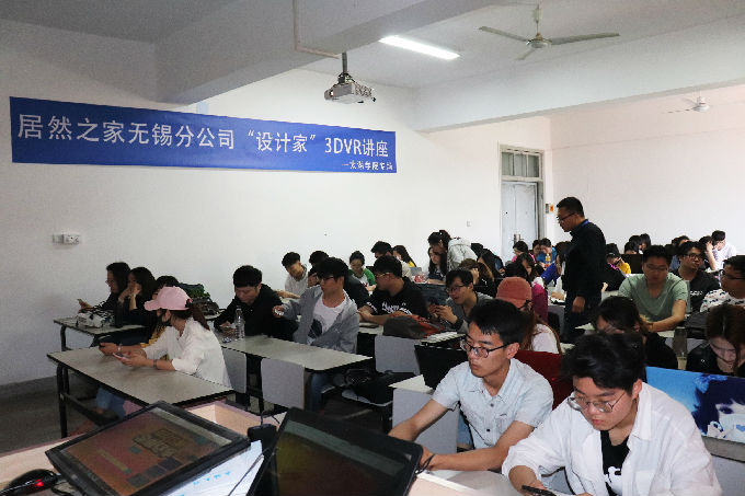 赵总请居然之家设计师丁老师教同学们如何启动“设计家3D云设计软件”,现场为同学们讲解了使用方法,同时为了方便同学们后续的学习组建了微信交流群。讲座现场气氛活跃,实现了设计师与师生间零距离互动。
