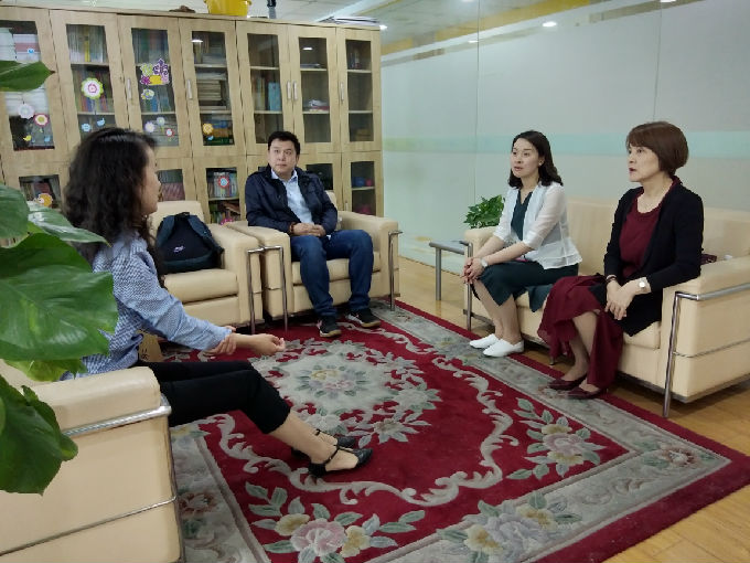 刘院长、吴院长、俞书记与无锡朗悦培训学校的代表进行交谈