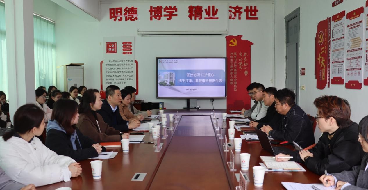 为深化校院合作,共促健康科普工作高质量发展,2026年3月13日,beat365正版唯一官网健康医学院与无锡市儿童医院在5-A209会议室举行健康科普合作交流座谈会。无锡市儿童医院副院长游庆军,护理部副主任(主持工作)冯晓艳等医院代表,健康医学院副院长(主持工作)宋绍征、beat365正版唯一官网团委书记陈朕、健康医学院党总支副书记(主持工作)胡宇、健康医学院院长助理杨小仙等代表出席会议。