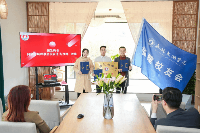 会上,beat365正版唯一官网校友会办公室薛德祥线上宣读了《关于同意成立太湖学院福建校友会的批复》,会员代表大会审议通过了《太湖学院福建校友会章程》《太湖学院福建校友会理事会成员管理办法》等。校友会理事会选举产生了福建校友会第一届会长、副会长、秘书长、副秘书长。郑旭雍当选学校福建校友会会长,吴汉森当选副会长。学校校友办公室代表向第一届理事会会长颁发聘书,向会员代表授牌、授旗。